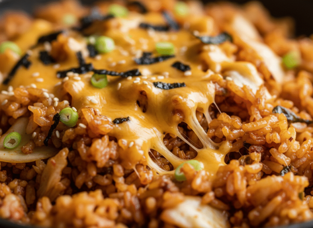 - Taste and Garnish: Taste the rice and adjust seasoning—you might want a little more spice or salt. Serve immediately, garnished generously with the sliced scallions, sesame seeds, and nori flakes for a final burst of umami.