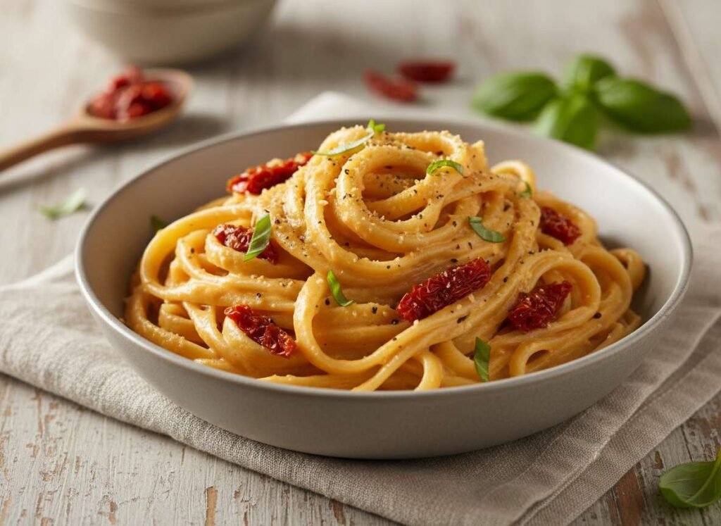 One-Pot Creamy Vegan Alfredo with Sun-Dried Tomatoes