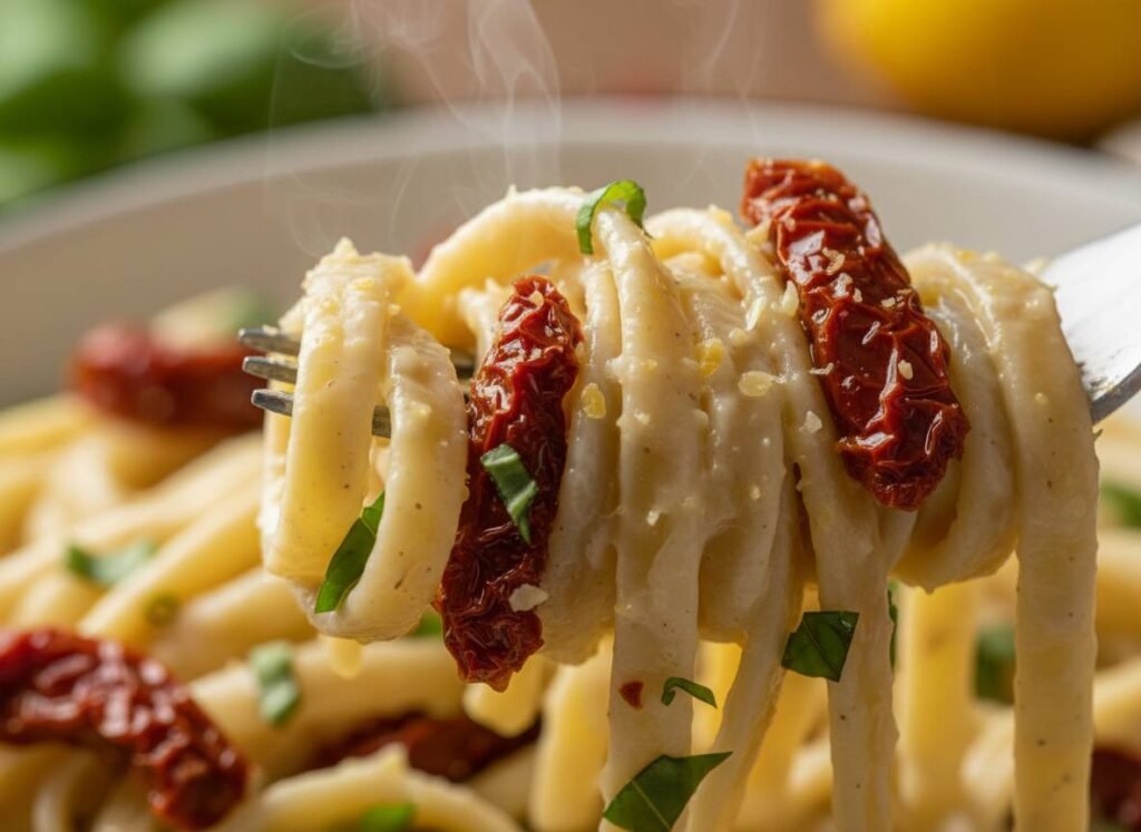 The One-Pot Creamy Vegan Alfredo with Sun-Dried Tomatoes is a strategic culinary evolution. By utilizing the “absorption-emulsion” method, we cook the pasta directly in a nutrient-dense cashew and sun-dried tomato broth. This isn’t just a convenience hack; it is a superior way to build a dish. As the pasta hydrates, it “drinks” the garlic and tomato essence from the inside out, resulting in a depth of flavor that traditionally takes much longer to develop. This 20-minute masterpiece is 100% plant-based and designed to fuel your high-energy lifestyle with zero stress and minimal cleanup.