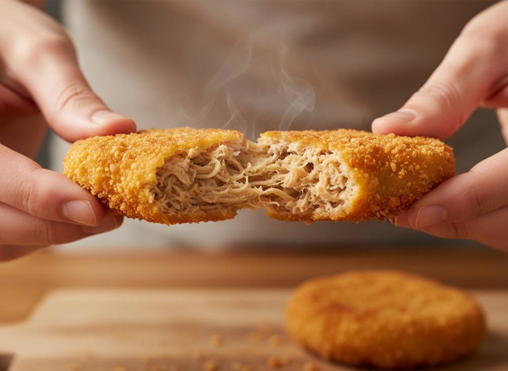 To trick the brain into thinking it’s eating a classic nugget, we use a specific blend of “poultry” aromatics.